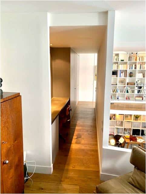 Au sein d’une résidence récente (2010), arborée et calme, proche du canal Saint Denis, à proximité de la gare, Agréable Duplex d’architecte d’intérieur de 3 pièces, avec une très belle hauteur de plafond (5m) , Situé au rez de chaussée et disposant une terrasse-jardin végétalisée, il comprend: Au RDC, une entrée, un superbe séjour- cathédrale donnant sur le jardin avec bibliothèque, une cuisine équipée, un espace salle à manger, une chambre avec de grands rangements, une salle d’eau (douche à l’italienne) et un WC séparé, Au 1er étage/Mezzanine, un petit salon donnant sur le séjour, se prolongeant sur une coursive avec bureau intégré et bibliothèque, une deuxième chambre lumineuse, donnant sur le jardin, avec une magnifique salle d’eau attenante. Parking au niveau -1 en option 18 000€